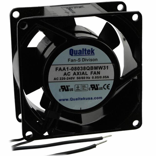 This is manufactured by Qualtek. The manufacturer part number is FAA1-08038QBMW31. The blades are constructed from robust plastic materials. It is assigned with possible HTSUS value of 8414.59.6590. The product is rohs3 compliant. Furthermore, the product is 38.00mm wide. The product features power and watts of 5.00w. It has a 24.0 cfm (0.672m³/min) air flow rate. It is approved by ce, curus, tuv. It has noise values of 26.2db(a). It also exhibits voltage rating of 230vac. In addition, it is reach unaffected. This has integrated with a ball, a bearing with long-lasting features. The product has 14 ~ 158°f (-10 ~ 70°c) operating temperature range. It provides maximum rpm up to 2400 rpm. The qualtek's product offers user-desired applications. The product has a 0.110 in h2o (27.4 pa) static pressure. The product's diameters include square - 80mm l x 80mm h. The product features 2 wire leads termination style. It has a long 38 weeks standard lead time. Additionally, the product's output is 0.030a. Its typical moisture sensitivity level is 1 (unlimited). The typical product's weight is 0.706 lb (320.24 g). The product faa1-08038, is a highly preferred choice for users. The frame of the product is made from highly durable aluminum materials. In addition, bulk is the available packaging type of the product. The latest designed fan is a type of tubeaxial offering unmatchable applications. Moreover, it corresponds to faa1-08038, a base product number of the product. The product is designated with the ear99 code number.
