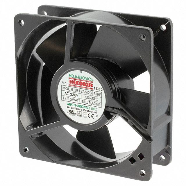 This is manufactured by Mechatronics Fan Group. The manufacturer part number is UF12AM23-BTHR-B1. The blades are constructed from robust metal materials. It is assigned with possible HTSUS value of 8414.59.6590. The product is rohs compliant. Furthermore, the product is 38.00mm wide. The product features power and watts of 13.00w. It has a 103.0 cfm (2.88m³/min) air flow rate. It is approved by ce, cul, tuv, ul. It has noise values of 46.0db(a). It also exhibits voltage rating of 230vac. This has integrated with a ball, a bearing with long-lasting features. The product has -40 ~ 194°f (-40 ~ 90°c) operating temperature range. It provides maximum rpm up to 3100 rpm. The mechatronics fan group's product offers user-desired applications. The product has a 0.240 in h2o (59.8 pa) static pressure. The product's diameters include square - 120mm l x 120mm h. The product features 2 terminals and 3 wire leads termination style. It has a long 41 weeks standard lead time. Additionally, the product's output is 0.090a. Its typical moisture sensitivity level is 1 (unlimited). The splendid features of the product include speed sensor (tach). The typical product's weight is 1.2 lbs (544.3 g). The product uf12am, is a highly preferred choice for users. The frame of the product is made from highly durable aluminum materials. In addition, bulk is the available packaging type of the product. The latest designed fan is a type of tubeaxial offering unmatchable applications. Moreover, it corresponds to uf12a, a base product number of the product. The product is designated with the ear99 code number.