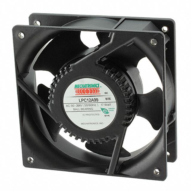This is manufactured by Mechatronics Fan Group. The manufacturer part number is LPC12A99-BTER. The blades are constructed from robust plastic materials. It is assigned with possible HTSUS value of 8414.59.6590. Furthermore, the product is 38.00mm wide. The product features power and watts of 12.00w. It has a 140.0 cfm (3.92m³/min) air flow rate. While the voltage range is 90 ~ 264vac. It has noise values of 56.0db(a). It also exhibits voltage rating of 90 ~ 264vac. This has integrated with a ball, a bearing with long-lasting features. The product has -40 ~ 158°f (-40 ~ 70°c) operating temperature range. It provides maximum rpm up to 4000 rpm. The product has a 0.440 in h2o (109.6 pa) static pressure. It is shipped in bulk package . The product's diameters include square - 120mm l x 120mm h. The product features 2 terminals termination style. Its typical moisture sensitivity level is 1 (unlimited). The splendid features of the product include electronic commutation (ec). The typical product's weight is 0.816 lb (370.13 g). The product lpc12a, is a highly preferred choice for users. The frame of the product is made from highly durable magnesium materials. The latest designed fan is a type of tubeaxial offering unmatchable applications. The product is designated with the ear99 code number.