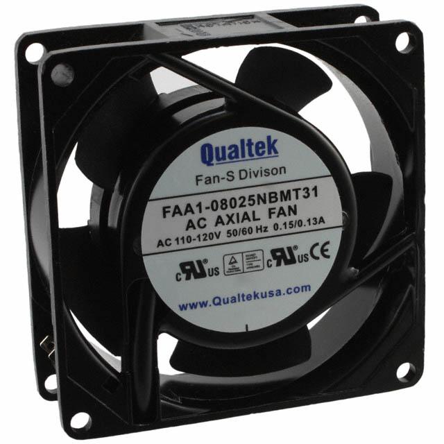 This is manufactured by Qualtek. The manufacturer part number is FAA1-08025NBMT31. It is assigned with possible HTSUS value of 8414.59.6590. The product is rohs3 compliant. Furthermore, the product is 25.00mm wide. The product features power and watts of 5.00w. It has a 19.0 cfm (0.532m³/min) air flow rate. It is approved by ce, curus, tuv. It has noise values of 24.0db(a). It also exhibits voltage rating of 115vac. In addition, it is reach unaffected. This has integrated with a ball, a bearing with long-lasting features. It provides maximum rpm up to 2500 rpm. The qualtek's product offers user-desired applications. The product has a 0.118 in h2o (29.4 pa) static pressure. The product's diameters include square - 80mm l x 80mm h. The product features 2 terminals termination style. It has a long 31 weeks standard lead time. Its typical moisture sensitivity level is 1 (unlimited). The typical product's weight is 0.463 lb (210.01 g). The product faa1-08025, is a highly preferred choice for users. The product has 14 ~ 158°f (-10 ~ 70°c) operating temperature range. In addition, bulk is the available packaging type of the product. The latest designed fan is a type of tubeaxial offering unmatchable applications. Moreover, it corresponds to faa1-08025, a base product number of the product. The product is designated with the ear99 code number.