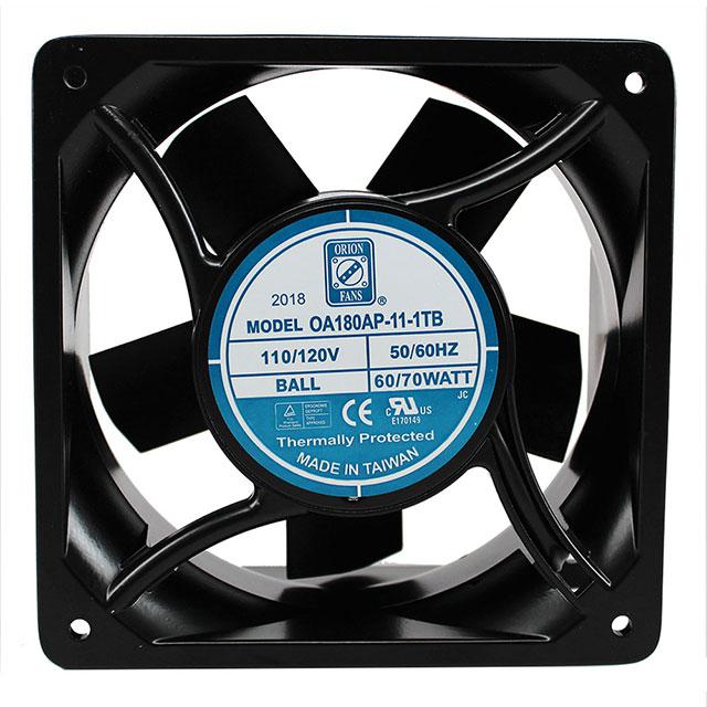 This is manufactured by Orion Fans. The manufacturer part number is OA180AP-11-1TB. The blades are constructed from robust polybutylene terephthalate (pbt) materials. It is assigned with possible HTSUS value of 8414.59.6590. The product is rohs3 compliant. Furthermore, the product is 89.00mm wide. The product features power and watts of 70.0w. It has a 409.0 cfm (11.45m³/min) air flow rate. It is approved by ce, curus, tuv, ur. While the voltage range is 100 ~ 120vac. It has noise values of 62.0db. It also exhibits voltage rating of 115vac. In addition, it is reach unaffected. This has integrated with a ball, a bearing with long-lasting features. The product has -4 ~ 158°f (-20 ~ 70°c) operating temperature range. It provides maximum rpm up to 3175 rpm. This product offers longer life span for 60000 hrs @ 40°c. The product has a 0.840 in h2o (209.2 pa) static pressure. It is shipped in box package . The product's diameters include square - 180mm l x 180mm h. The product features 2 terminals termination style. It has a long 19 weeks standard lead time. Its typical moisture sensitivity level is 1 (unlimited). The splendid features of the product include thermal overload protector (top). The typical product's weight is 4 lbs (1.8 kg). The product oa180ap, is a highly preferred choice for users. The frame of the product is made from highly durable aluminum materials. The latest designed fan is a type of tubeaxial offering unmatchable applications. Moreover, it corresponds to oa180ap, a base product number of the product. The product is designated with the ear99 code number.