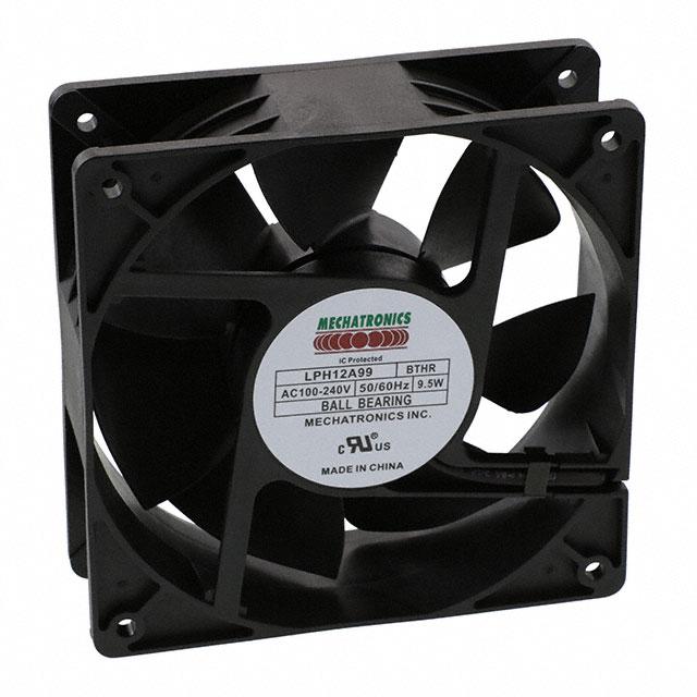 This is manufactured by Mechatronics Fan Group. The manufacturer part number is LPH12A99-BTHR. The blades are constructed from robust plastic materials. It is assigned with possible HTSUS value of 8414.59.6590. The product is rohs3 compliant. Furthermore, the product is 38.50mm wide. The product features power and watts of 9.50w. It has a 123.9 cfm (3.47m³/min) air flow rate. It has noise values of 49.0db(a). It also exhibits voltage rating of 100 ~ 240vac. This product offers longer life span for 50000 hrs @ 25°c. This has integrated with a ball, a bearing with long-lasting features. It provides maximum rpm up to 3500 rpm. The mechatronics fan group's product offers user-desired applications. The product has a 0.363 in h2o (90.5 pa) static pressure. The product's diameters include square - 120mm l x 120mm h. The product features 2 terminals termination style. It has a long 11 weeks standard lead time. Additionally, the product's output is 0.180a. Its typical moisture sensitivity level is not applicable. The splendid features of the product include auto restart, electronic commutation (ec). The typical product's weight is 0.631 lb (286.20 g). The product lph12a99, is a highly preferred choice for users. The frame of the product is made from highly durable plastic materials. In addition, bulk is the available packaging type of the product. The latest designed fan is a type of tubeaxial offering unmatchable applications. Moreover, it corresponds to lph12, a base product number of the product. The product is designated with the ear99 code number.