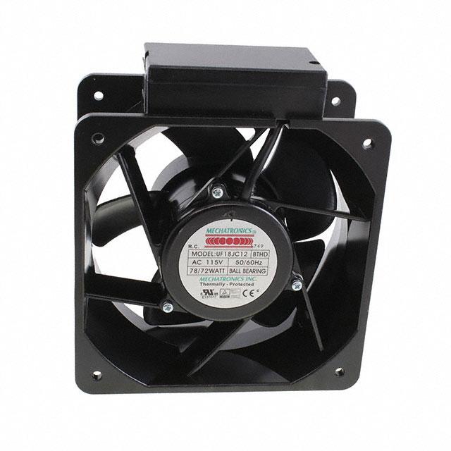 This is manufactured by Mechatronics Fan Group. The manufacturer part number is UF18JC12-BTHR. It is assigned with possible HTSUS value of 8414.59.6590. The product is rohs3 compliant. Furthermore, the product is 90.00mm wide. The product features power and watts of 72.0w. It has a 460.0 cfm (12.88m³/min) air flow rate. It is approved by ce, cul, tuv, ul. It has noise values of 59.0db(a). It also exhibits voltage rating of 115vac. This has integrated with a ball, a bearing with long-lasting features. It provides maximum rpm up to 3400 rpm. The mechatronics fan group's product offers user-desired applications. The product has a 1.060 in h2o (264.0 pa) static pressure. The product's diameters include square - 180mm l x 180mm h. The product features 2 terminals termination style. It has a long 18 weeks standard lead time. Its typical moisture sensitivity level is not applicable. The splendid features of the product include permanent split capacitor motor, thermal overload protector (top). The typical product's weight is 4.8 lbs (2.2 kg). The product uf18jc-4, is a highly preferred choice for users. The product has -40 ~ 158°f (-40 ~ 70°c) operating temperature range. In addition, bulk is the available packaging type of the product. The latest designed fan is a type of tubeaxial offering unmatchable applications. Moreover, it corresponds to uf18j, a base product number of the product. The product is designated with the ear99 code number.