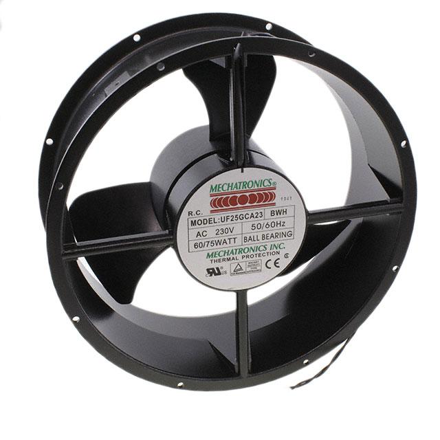 This is manufactured by Mechatronics Fan Group. The manufacturer part number is UF25GCA23-BWHR. The blades are constructed from robust polybutylene terephthalate (pbt) materials. It is assigned with possible HTSUS value of 8414.59.6590. The product is rohs compliant. Furthermore, the product is 89.00mm wide. The product features power and watts of 75.0w. It has a 680.0 cfm (19.04m³/min) air flow rate. It is approved by ce, cul, tuv, ul. It has noise values of 62.0db(a). It also exhibits voltage rating of 230vac. This has integrated with a ball, a bearing with long-lasting features. The product has -40 ~ 158°f (-40 ~ 70°c) operating temperature range. It provides maximum rpm up to 2600 rpm. The product has a 0.370 in h2o (92.2 pa) static pressure. It is shipped in bulk package . The product's diameters include round - 254mm dia. The product features 2 wire leads termination style. It has a long 22 weeks standard lead time. Additionally, the product's output is 0.350a. Its typical moisture sensitivity level is not applicable. The splendid features of the product include permanent split capacitor motor, thermal overload protector (top). The typical product's weight is 4.1 lbs (1.9 kg). The product uf25gc, is a highly preferred choice for users. The frame of the product is made from highly durable aluminum materials. The latest designed fan is a type of tubeaxial offering unmatchable applications. Moreover, it corresponds to uf25g, a base product number of the product. The product is designated with the ear99 code number.
