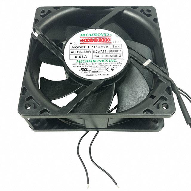 This is manufactured by Mechatronics Fan Group. The manufacturer part number is LPT12A99-BWHR. It is assigned with possible HTSUS value of 8414.59.6590. The product is rohs compliant. Furthermore, the product is 38.00mm wide. The product features power and watts of 4.90w. It has a 106.0 cfm (2.97m³/min) air flow rate. It has noise values of 43.0db(a). It also exhibits voltage rating of 115 ~ 230vac. This has integrated with a ball, a bearing with long-lasting features. It provides maximum rpm up to 3200 rpm. The mechatronics fan group's product offers user-desired applications. The product has a 0.340 in h2o (84.7 pa) static pressure. The product's diameters include square - 120mm l x 120mm h. The product features 2 wire leads termination style. It has a long 28 weeks standard lead time. Its typical moisture sensitivity level is 1 (unlimited). The splendid features of the product include auto restart, electronic commutation (ec). The typical product's weight is 0.644 lb (292.11 g). The product lpt12a99, is a highly preferred choice for users. In addition, bulk is the available packaging type of the product. The latest designed fan is a type of tubeaxial offering unmatchable applications. Moreover, it corresponds to lpt12, a base product number of the product. The product is designated with the ear99 code number.