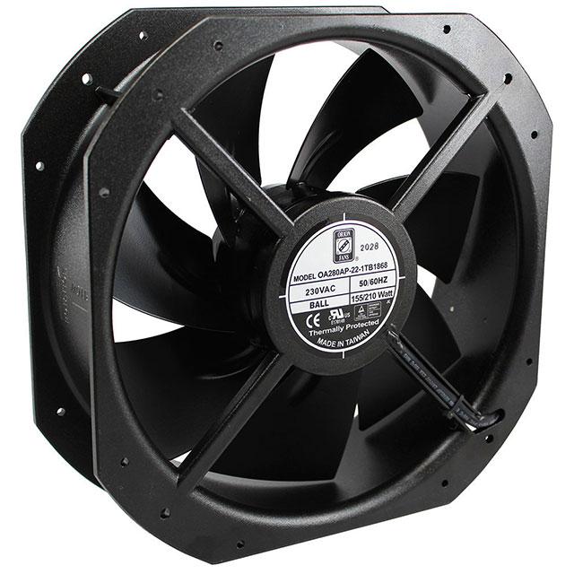 This is manufactured by Orion Fans. The manufacturer part number is OA280AP-22-1TB1868. It is assigned with possible HTSUS value of 8414.59.6590. The product is rohs3 compliant. Furthermore, the product is 89.00mm wide. The product features power and watts of 210w. It has a 1300.0 cfm (36.40m³/min) air flow rate. It is approved by ce, curus, tuv, ur. It has noise values of 73.0db. It also exhibits voltage rating of 230vac. In addition, it is reach unaffected. This has integrated with a ball, a bearing with long-lasting features. It provides maximum rpm up to 3200 rpm. The orion fans's product offers user-desired applications. The product has a 0.750 in h2o (186.8 pa) static pressure. The product's diameters include square - 280mm l x 280mm h. The product features 2 terminals termination style. It has a long 19 weeks standard lead time. Its typical moisture sensitivity level is not applicable. It is IP rated with ip68 - dust tight, waterproof. The splendid features of the product include capacitor, thermal overload protector (top). The typical product's weight is 7.4 lbs (3.4 kg). The product oa280ap, is a highly preferred choice for users. The product has -22 ~ 176°f (-30 ~ 80°c) operating temperature range. In addition, box is the available packaging type of the product. The latest designed fan is a type of tubeaxial offering unmatchable applications. Moreover, it corresponds to oa280ap, a base product number of the product. The product is designated with the ear99 code number.