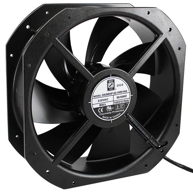 This is manufactured by Orion Fans. The manufacturer part number is OA280AP-22-1WB1868. It is assigned with possible HTSUS value of 8414.59.6590. The product is rohs3 compliant. Furthermore, the product is 89.00mm wide. The product features power and watts of 210w. It has a 1300.0 cfm (36.40m³/min) air flow rate. It is approved by ce, curus, tuv, ur. It has noise values of 73.0db. It also exhibits voltage rating of 230vac. In addition, it is reach unaffected. This has integrated with a ball, a bearing with long-lasting features. It provides maximum rpm up to 3200 rpm. The orion fans's product offers user-desired applications. The product has a 0.750 in h2o (186.8 pa) static pressure. The product's diameters include square - 280mm l x 280mm h. The product features 2 wire leads termination style. It has a long 19 weeks standard lead time. Its typical moisture sensitivity level is not applicable. It is IP rated with ip68 - dust tight, waterproof. The splendid features of the product include capacitor, thermal overload protector (top). The typical product's weight is 7.4 lbs (3.4 kg). The product oa280ap, is a highly preferred choice for users. The product has -22 ~ 176°f (-30 ~ 80°c) operating temperature range. In addition, box is the available packaging type of the product. The latest designed fan is a type of tubeaxial offering unmatchable applications. Moreover, it corresponds to oa280ap, a base product number of the product. The product is designated with the ear99 code number.