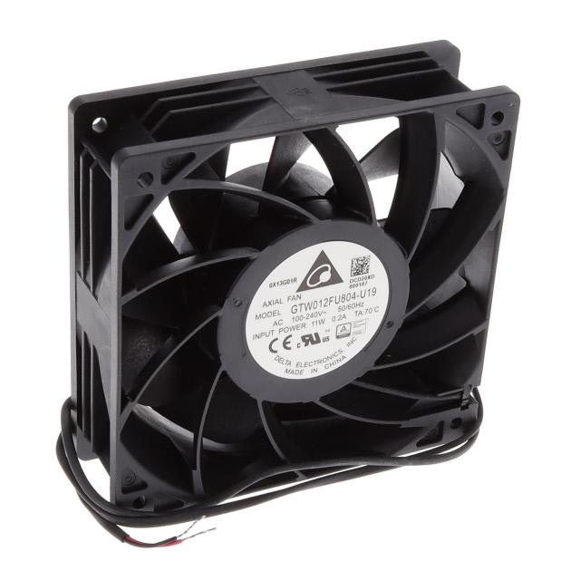 This is manufactured by Delta Electronics. The manufacturer part number is GTW012FU804-U19. The blades are constructed from robust plastic materials. It is assigned with possible HTSUS value of 8414.59.6590. The product is rohs3 compliant. Furthermore, the product is 38.00mm wide. The product features power and watts of 11.00w. It has a 145.0 cfm (4.06m³/min) air flow rate. It is approved by curus, tuv. While the voltage range is 100 ~ 240vac. It has noise values of 54.9db(a). It also exhibits voltage rating of 220vac. This product offers longer life span for 60000 hrs @ 40°c. In addition, it is reach unaffected. This has integrated with a ball, a bearing with long-lasting features. The product has -4 ~ 158°f (-20 ~ 70°c) operating temperature range. It provides maximum rpm up to 4200 rpm. The delta electronics's product offers user-desired applications. The product has a 0.450 in h2o (112.1 pa) static pressure. The product's diameters include square - 120mm l x 120mm h. The product features 2 wire leads termination style. It has a long 32 weeks standard lead time. Its typical moisture sensitivity level is not applicable. It is IP rated with ip54 - dust protected, water resistant. The splendid features of the product include electronic commutation (ec), thermal overload protector (top). The typical product's weight is 0.081 lb (36.74 g). The product gtw, is a highly preferred choice for users. The frame of the product is made from highly durable plastic materials. In addition, box is the available packaging type of the product. The latest designed fan is a type of tubeaxial offering unmatchable applications. Moreover, it corresponds to gtw012, a base product number of the product. The product is designated with the ear99 code number.