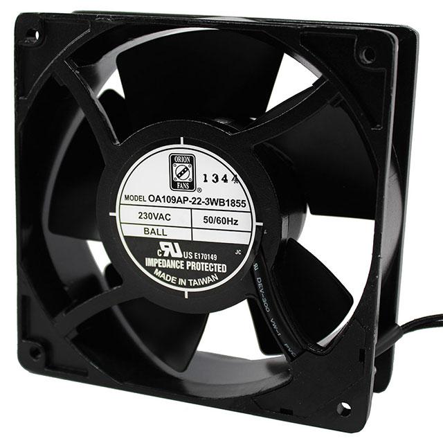 This is manufactured by Orion Fans. The manufacturer part number is OA109AP-22-3WB1855. The blades are constructed from robust metal materials. It is assigned with possible HTSUS value of 8414.59.6590. The product is rohs3 compliant. Furthermore, the product is 38.50mm wide. The product features power and watts of 9.00w. It has a 60.0 cfm (1.68m³/min) air flow rate. It is approved by curus, tuv. While the voltage range is 200 ~ 240vac. It has noise values of 32.0db. It also exhibits voltage rating of 230vac. In addition, it is reach unaffected. This has integrated with a ball, a bearing with long-lasting features. The product has -22 ~ 176°f (-30 ~ 80°c) operating temperature range. It provides maximum rpm up to 1800 rpm. This product offers longer life span for 50000 hrs @ 40°c. The product has a 0.090 in h2o (22.4 pa) static pressure. It is shipped in box package . The product's diameters include square - 119.5mm l x 119.5mm h. The product features 2 wire leads termination style. It has a long 19 weeks standard lead time. Its typical moisture sensitivity level is not applicable. It is IP rated with ip55 - dust protected, water resistant. The typical product's weight is 1.3 lbs (589.7 g). The product oa109, is a highly preferred choice for users. The frame of the product is made from highly durable aluminum materials. The latest designed fan is a type of tubeaxial offering unmatchable applications. Moreover, it corresponds to oa109ap, a base product number of the product. The product is designated with the ear99 code number.