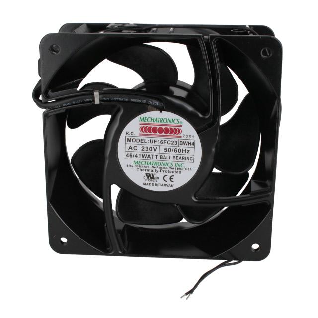 This is manufactured by Mechatronics Fan Group. The manufacturer part number is UF16FC23-BWHR4. The blades are constructed from robust polybutylene terephthalate (pbt) materials. It is assigned with possible HTSUS value of 8414.59.6590. The product is rohs3 compliant. Furthermore, the product is 62.00mm wide. The product features power and watts of 41.00w. It has a 265.0 cfm (7.42m³/min) air flow rate. It has noise values of 56.0db(a). It also exhibits voltage rating of 230vac. This has integrated with a ball, a bearing with long-lasting features. It provides maximum rpm up to 3400 rpm. The product has a 0.720 in h2o (179.3 pa) static pressure. It is shipped in bulk package . The product's diameters include square - 160mm l x 160mm h. The product features 2 wire leads termination style. It has a long 22 weeks standard lead time. Additionally, the product's output is 0.170a. Its typical moisture sensitivity level is not applicable. The splendid features of the product include permanent split capacitor motor, thermal overload protector (top). The product uf16fc, is a highly preferred choice for users. The frame of the product is made from highly durable aluminum materials. The latest designed fan is a type of tubeaxial offering unmatchable applications. Moreover, it corresponds to uf16f, a base product number of the product. The product is designated with the ear99 code number.