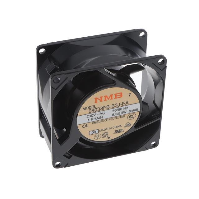 This is manufactured by NMB Technologies Corporation. The manufacturer part number is 08038FB-B3J-EA-00. The blades are constructed from robust plastic materials. It is assigned with possible HTSUS value of 8414.59.6590. The product is rohs3 compliant. Furthermore, the product is 38.00mm wide. The product features power and watts of 6.50w. It has a 20.0 cfm (0.560m³/min) air flow rate. It has noise values of 35.0db. It also exhibits voltage rating of 230vac. This product offers longer life span for 50000 hrs @ 25°c. In addition, it is reach info available upon request. This has integrated with a ball, a bearing with long-lasting features. The product has 14 ~ 158°f (-10 ~ 70°c) operating temperature range. It provides maximum rpm up to 2050 rpm. The nmb technologies corporation's product offers user-desired applications. The product has a 0.090 in h2o (22.4 pa) static pressure. The product's diameters include square - 80mm l x 80mm h. The product features 2 terminals termination style. It has a long 22 weeks standard lead time. Additionally, the product's output is 0.050a. Its typical moisture sensitivity level is not applicable. The product 08038fb, is a highly preferred choice for users. The frame of the product is made from highly durable aluminum materials. In addition, bulk is the available packaging type of the product. The latest designed fan is a type of tubeaxial offering unmatchable applications. The product is designated with the ear99 code number.