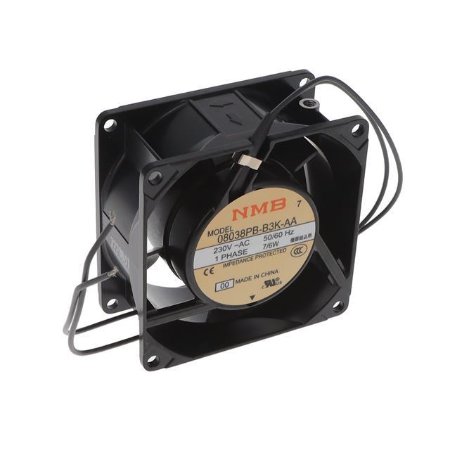 This is manufactured by NMB Technologies Corporation. The manufacturer part number is 08038PB-B3K-AA-00. The blades are constructed from robust plastic materials. It is assigned with possible HTSUS value of 8414.59.6590. Furthermore, the product is 38.00mm wide. The product features power and watts of 6.00w. It has a 26.0 cfm (0.728m³/min) air flow rate. It has noise values of 34.0db. It also exhibits voltage rating of 230vac. This product offers longer life span for 100000 hrs @ 25°c. This has integrated with a ball, a bearing with long-lasting features. The product has 14 ~ 158°f (-10 ~ 70°c) operating temperature range. It provides maximum rpm up to 2500 rpm. The nmb technologies corporation's product offers user-desired applications. The product has a 0.140 in h2o (34.9 pa) static pressure. The product's diameters include square - 80mm l x 80mm h. The product features 2 terminals termination style. It has a long 22 weeks standard lead time. Additionally, the product's output is 0.045a. Its typical moisture sensitivity level is not applicable. The product 08038pb, is a highly preferred choice for users. The frame of the product is made from highly durable aluminum materials. In addition, bulk is the available packaging type of the product. The latest designed fan is a type of tubeaxial offering unmatchable applications. The product is designated with the ear99 code number.