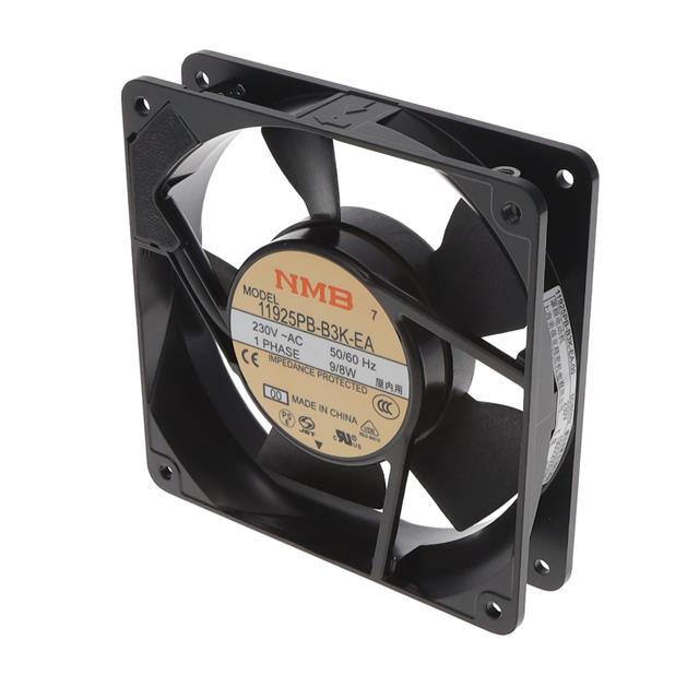 This is manufactured by NMB Technologies Corporation. The manufacturer part number is 11925PB-B3K-EA-00. The blades are constructed from robust plastic materials. It is assigned with possible HTSUS value of 8414.59.6590. The product is rohs3 compliant. Furthermore, the product is 25.50mm wide. The product features power and watts of 8.00w. It has a 53.0 cfm (1.48m³/min) air flow rate. It has noise values of 30.0db. It also exhibits voltage rating of 230vac. This product offers longer life span for 100000 hrs @ 25°c. This has integrated with a ball, a bearing with long-lasting features. The product has 14 ~ 158°f (-10 ~ 70°c) operating temperature range. It provides maximum rpm up to 2100 rpm. The nmb technologies corporation's product offers user-desired applications. The product has a 0.080 in h2o (19.9 pa) static pressure. The product's diameters include square - 119mm l x 119mm h. The product features 2 terminals termination style. It has a long 22 weeks standard lead time. Additionally, the product's output is 0.050a. Its typical moisture sensitivity level is not applicable. The product 11925pb, is a highly preferred choice for users. The frame of the product is made from highly durable aluminum materials. In addition, bulk is the available packaging type of the product. The latest designed fan is a type of tubeaxial offering unmatchable applications. The product is designated with the ear99 code number.