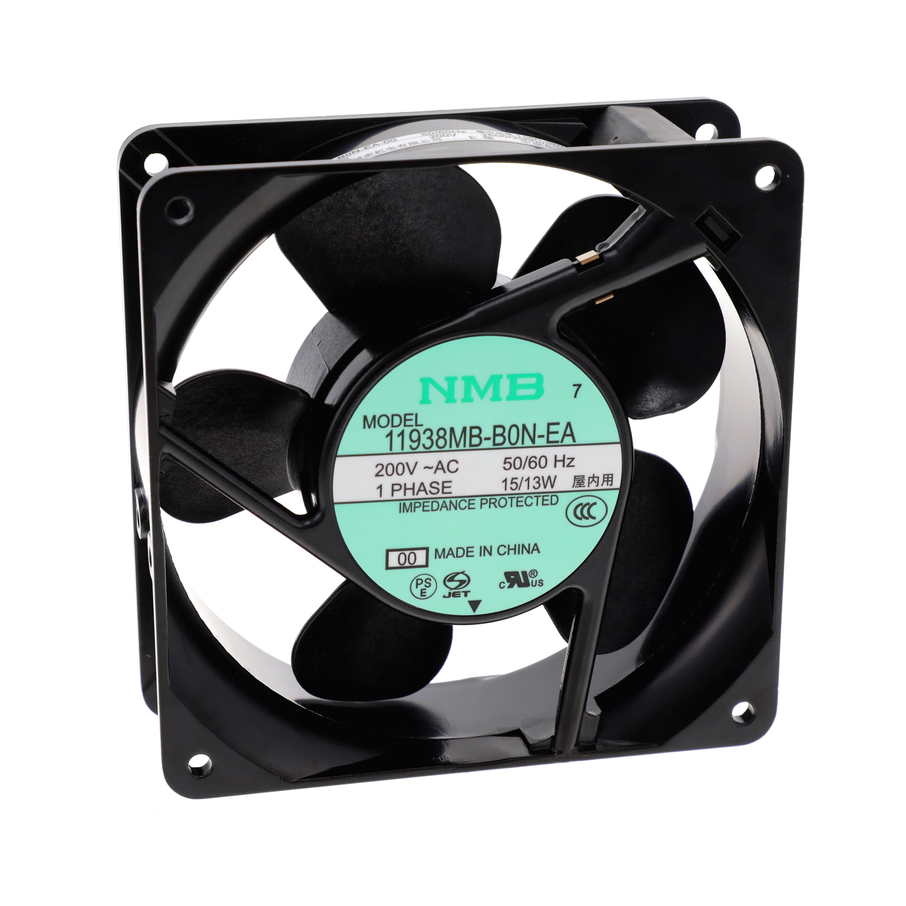 This is manufactured by NMB Technologies Corporation. The manufacturer part number is 11938MB-B0N-EA-00. The blades are constructed from robust plastic materials. It is assigned with possible HTSUS value of 8414.59.6590. The product is rohs3 compliant. Furthermore, the product is 38.00mm wide. The product features power and watts of 13.00w. It has a 102.4 cfm (2.87m³/min) air flow rate. It has noise values of 41.0db. It also exhibits voltage rating of 200vac. This product offers longer life span for 100000 hrs @ 25°c. This has integrated with a ball, a bearing with long-lasting features. The product has 14 ~ 158°f (-10 ~ 70°c) operating temperature range. It provides maximum rpm up to 2900 rpm. The nmb technologies corporation's product offers user-desired applications. The product has a 0.310 in h2o (77.2 pa) static pressure. The product's diameters include square - 119mm l x 119mm h. The product features 2 terminals termination style. It has a long 22 weeks standard lead time. Additionally, the product's output is 0.120a. Its typical moisture sensitivity level is not applicable. The product 11938mb, is a highly preferred choice for users. The frame of the product is made from highly durable aluminum materials. In addition, bulk is the available packaging type of the product. The latest designed fan is a type of tubeaxial offering unmatchable applications. The product is designated with the ear99 code number.