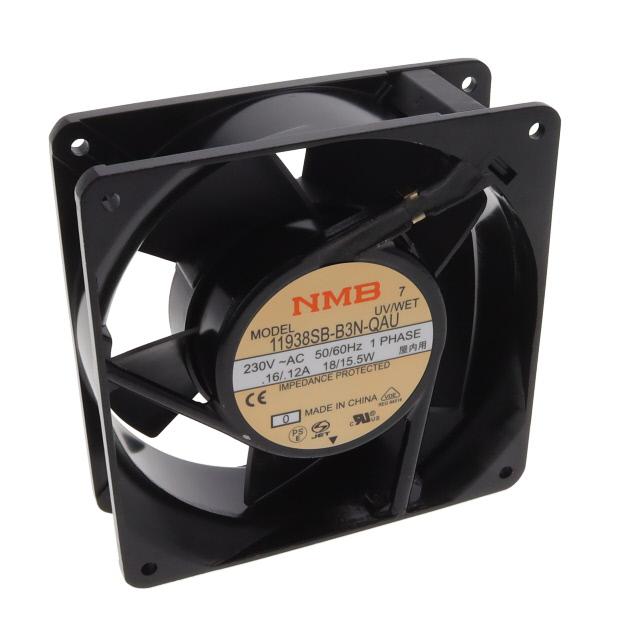 This is manufactured by NMB Technologies Corporation. The manufacturer part number is 11938SB-B3N-QA-U0. The blades are constructed from robust plastic materials. It is assigned with possible HTSUS value of 8414.59.6590. The product is rohs3 compliant. Furthermore, the product is 38.00mm wide. The product features power and watts of 15.50w. It has a 105.9 cfm (2.97m³/min) air flow rate. It has noise values of 44.0db. It also exhibits voltage rating of 230vac. This product offers longer life span for 100000 hrs @ 25°c. In addition, it is reach info available upon request. This has integrated with a ball, a bearing with long-lasting features. The product has 14 ~ 149°f (-10 ~ 65°c) operating temperature range. It provides maximum rpm up to 3100 rpm. The nmb technologies corporation's product offers user-desired applications. The product has a 0.400 in h2o (99.6 pa) static pressure. The product's diameters include square - 119mm l x 119mm h. The product features 2 terminals termination style. It has a long 22 weeks standard lead time. Additionally, the product's output is 0.120a. Its typical moisture sensitivity level is not applicable. The product 11938sb, is a highly preferred choice for users. The frame of the product is made from highly durable aluminum materials. In addition, bulk is the available packaging type of the product. The latest designed fan is a type of tubeaxial offering unmatchable applications. The product is designated with the ear99 code number.