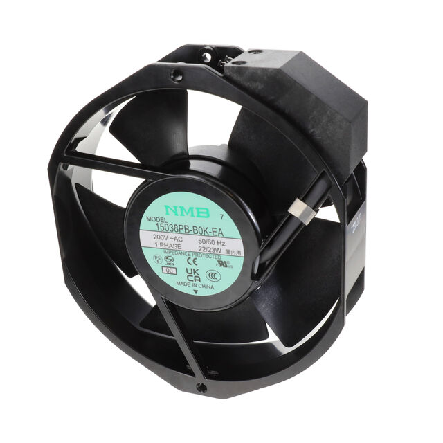 This is manufactured by NMB Technologies Corporation. The manufacturer part number is 15038PB-B0K-EA-00. The blades are constructed from robust plastic materials. It is assigned with possible HTSUS value of 8414.59.6590. The product is rohs3 compliant. Furthermore, the product is 38.00mm wide. The product features power and watts of 23.00w. It has a 166.0 cfm (4.65m³/min) air flow rate. It has noise values of 50.0db. It also exhibits voltage rating of 200vac. This product offers longer life span for 100000 hrs @ 25°c. In addition, it is reach info available upon request. This has integrated with a ball, a bearing with long-lasting features. The product has 14 ~ 158°f (-10 ~ 70°c) operating temperature range. It provides maximum rpm up to 2600 rpm. The nmb technologies corporation's product offers user-desired applications. The product has a 0.472 in h2o (117.6 pa) static pressure. The product's diameters include rectangular/rounded - 172mm l x 150mm h. The product features 2 terminals termination style. It has a long 22 weeks standard lead time. Additionally, the product's output is 0.140a. Its typical moisture sensitivity level is not applicable. The product 15038pb, is a highly preferred choice for users. The frame of the product is made from highly durable aluminum materials. In addition, bulk is the available packaging type of the product. The latest designed fan is a type of tubeaxial offering unmatchable applications. The product is designated with the ear99 code number.