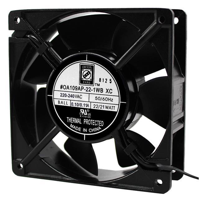 This is manufactured by Orion Fans. The manufacturer part number is OA109AP-22-1WBXC. The blades are constructed from robust polybutylene terephthalate (pbt) materials. It is assigned with possible HTSUS value of 8414.59.6590. The product is rohs3 compliant. Furthermore, the product is 38.00mm wide. The product features power and watts of 22.00w. It has a 131.0 cfm (3.67m³/min) air flow rate. It is approved by curus, tuv. It has noise values of 47.0db(a). It also exhibits voltage rating of 230vac. This product offers longer life span for 60000 hrs @ 40°c. In addition, it is reach unaffected. This has integrated with a ball, a bearing with long-lasting features. The product has 14 ~ 149°f (-10 ~ 65°c) operating temperature range. It provides maximum rpm up to 3300 rpm. The orion fans's product offers user-desired applications. The product has a 0.490 in h2o (122.1 pa) static pressure. The product's diameters include square - 120mm l x 120mm h. The product features 2 wire leads termination style. It has a long 2 weeks standard lead time. Its typical moisture sensitivity level is not applicable. The splendid features of the product include capacitor, thermal overload protector (top). The product oa109ap, is a highly preferred choice for users. The frame of the product is made from highly durable aluminum materials. In addition, bulk is the available packaging type of the product. The latest designed fan is a type of tubeaxial offering unmatchable applications. The product is designated with the ear99 code number.