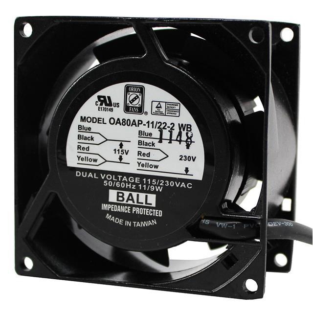 This is manufactured by Orion Fans. The manufacturer part number is OA80AP-11/22-2WB. The blades are constructed from robust polybutylene terephthalate (pbt) materials. It is assigned with possible HTSUS value of 8414.59.6590. Furthermore, the product is 38.00mm wide. The product features power and watts of 9.00w. It has a 24.0 cfm (0.672m³/min) air flow rate. It is approved by ce, curus, tuv, ur. While the voltage range is 100 ~ 240vac. It has noise values of 22.0db(a). It also exhibits voltage rating of 115 ~ 230vac. This product offers longer life span for 80000 hrs @ 45°c. In addition, it is reach unaffected. This has integrated with a ball, a bearing with long-lasting features. The product has -4 ~ 158°f (-20 ~ 70°c) operating temperature range. It provides maximum rpm up to 2250 rpm. The orion fans's product offers user-desired applications. The product has a 0.170 in h2o (42.3 pa) static pressure. The product's diameters include square - 80mm l x 80mm h. The product features 2 wire leads termination style. It has a long 2 weeks standard lead time. Its typical moisture sensitivity level is not applicable. The splendid features of the product include dual voltage. The product oa80ap, is a highly preferred choice for users. The frame of the product is made from highly durable aluminum materials. In addition, bulk is the available packaging type of the product. The latest designed fan is a type of tubeaxial offering unmatchable applications. The product is designated with the ear99 code number.