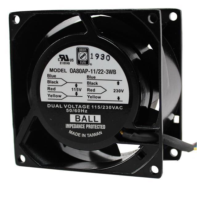 This is manufactured by Orion Fans. The manufacturer part number is OA80AP-11/22-3WB. The blades are constructed from robust polybutylene terephthalate (pbt) materials. It is assigned with possible HTSUS value of 8414.59.6590. Furthermore, the product is 38.00mm wide. The product features power and watts of 5.00w. It has a 17.0 cfm (0.476m³/min) air flow rate. It is approved by ce, curus, tuv, ur. While the voltage range is 100 ~ 240vac. It has noise values of 18.0db(a). It also exhibits voltage rating of 115 ~ 230vac. This product offers longer life span for 80000 hrs @ 45°c. In addition, it is reach unaffected. This has integrated with a ball, a bearing with long-lasting features. The product has -4 ~ 158°f (-20 ~ 70°c) operating temperature range. It provides maximum rpm up to 1700 rpm. The orion fans's product offers user-desired applications. The product has a 0.100 in h2o (24.9 pa) static pressure. The product's diameters include square - 80mm l x 80mm h. The product features 2 wire leads termination style. It has a long 2 weeks standard lead time. Its typical moisture sensitivity level is not applicable. The splendid features of the product include dual voltage. The product oa80ap, is a highly preferred choice for users. The frame of the product is made from highly durable aluminum materials. In addition, bulk is the available packaging type of the product. The latest designed fan is a type of tubeaxial offering unmatchable applications. The product is designated with the ear99 code number.