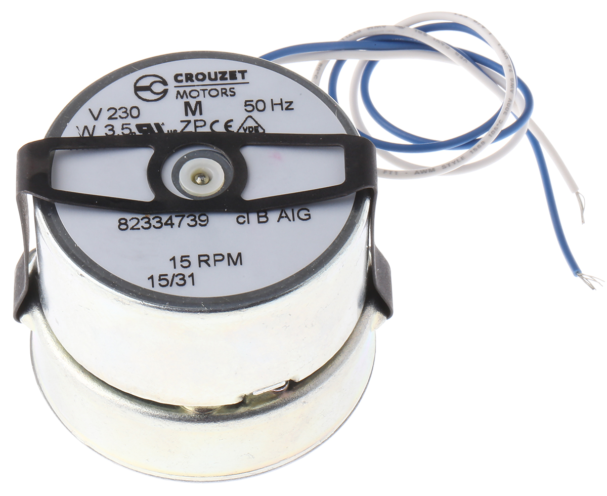 This is manufactured by Crouzet. The manufacturer part number is 82334739. The diameter of the shaft is 4mm. The given dimensions of the product include 41.65 x 55.5 x 65.9 mm. Its output speed is 15 rpm . Its accurate length is 41.65mm. Its maximum output torque is about 0.5 nm . Furthermore, the product is 55.5mm wide. The product comes in 65.9mm depth. The shaft is 10mm long. Features 230 v supply voltage. Allows clockwise rotation. Additionally, it has a/an synchronous geared type AC motor . Feature 3 w of power rating. It is assigned with possible HTSUS value of 0000.00.0000. The product is rohs compliant. In addition, it is reach unaffected. The crouzet's product offers user-desired applications. It has a long 7 weeks standard lead time. Its typical moisture sensitivity level is 1 (unlimited). The product 82334, is a highly preferred choice for users. In addition, bulk is the available packaging type of the product.