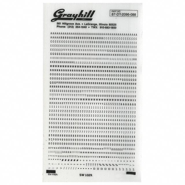 This is manufactured by Grayhill Inc.. The manufacturer part number is 87-DT-2096-088. It is assigned with possible HTSUS value of 8538.90.8160. The product is rohs compliant. It is a type of legend sheet accessory. In addition, it is reach unaffected. Its typical moisture sensitivity level is 1 (unlimited). The product is suitable for use with multiple series. The product is designated with the ear99 code number.