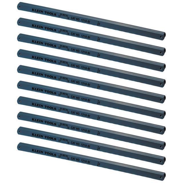 This is manufactured by Klein Tools, Inc.. The manufacturer part number is 1218BI. It is assigned with possible HTSUS value of 0000.00.0000. The product is not applicable. It is a type of blades accessory. Its typical moisture sensitivity level is not applicable. In addition, bulk is the available packaging type of the product. The product is suitable for use with hacksaw. It has a long 2 weeks standard lead time. The klein tools, inc.'s product offers user-desired applications.