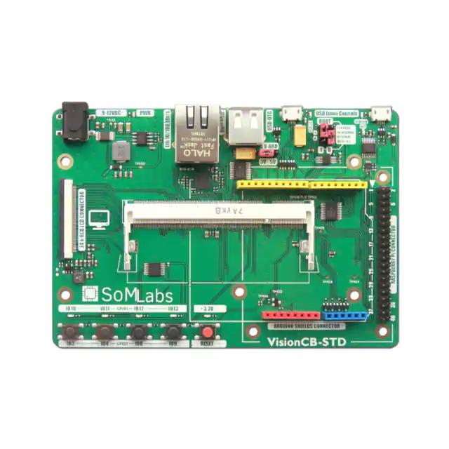 This is manufactured by SOMLABS. The manufacturer part number is VISIONCB-6ULL-STD V.2.0. It is a type of board accessory. In addition, box is the available packaging type of the product. Specifications include 512mb sdram ddr3l, 1x ethernet 10/100mbit/s, rj45, 24-bit rgb parallel interface, sodimm200. The somlabs's product offers user-desired applications.