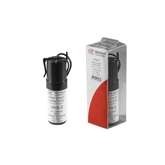 This is manufactured by Hartland Controls/Littelfuse. The manufacturer part number is HHS-5. It is assigned with possible HTSUS value of 8532.22.0055. It is a type of hard start capacitor accessory. Its typical moisture sensitivity level is 1 (unlimited). Specifications include 43µf-52µf, 90v-277v. In addition, box is the available packaging type of the product. The product's typical Applications include uses in motor. The hartland controls/littelfuse's product offers user-desired applications. The product is designated with the ear99 code number.