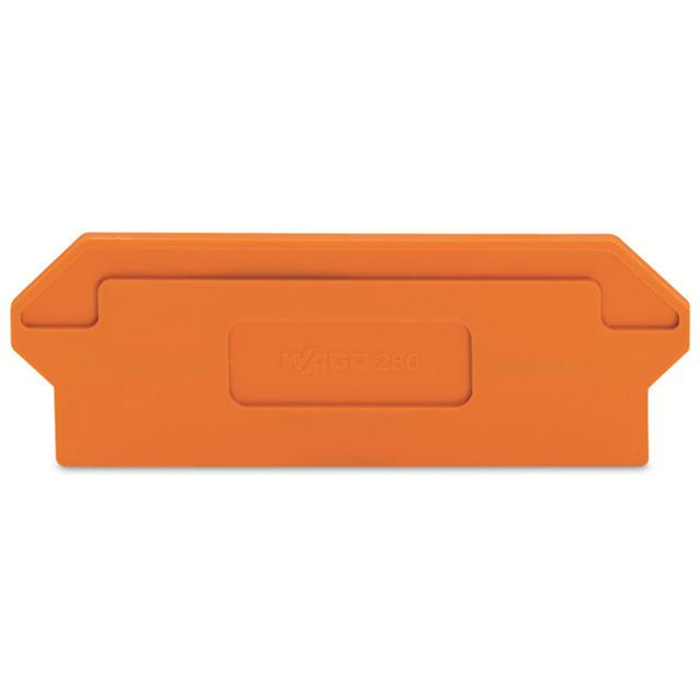 This is manufactured by WAGO Corporation. The manufacturer part number is 280-327. It is assigned with possible HTSUS value of 8538.90.8180. It is shipped in box package . It has a classic orange colour. The product is rohs3 compliant. Its typical moisture sensitivity level is not applicable. The product is suitable for use with din rail terminal blocks. It has a long 12 weeks standard lead time. It comes in separator configuration. The product is designated with the ear99 code number.