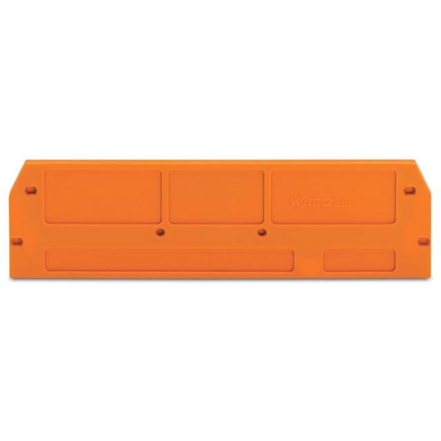 This is manufactured by WAGO Corporation. The manufacturer part number is 280-373. It is assigned with possible HTSUS value of 8538.90.8180. It is shipped in box package . It has a classic orange colour. The product is rohs3 compliant. Its typical moisture sensitivity level is not applicable. The product is suitable for use with din rail terminal blocks. It has a long 12 weeks standard lead time. It comes in end plate configuration. The product is designated with the ear99 code number.