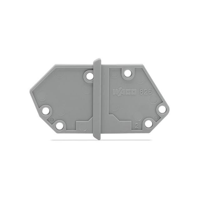 This is manufactured by WAGO Corporation. The manufacturer part number is 826-158. It is assigned with possible HTSUS value of 8538.90.8180. It is shipped in box package . It has a classic gray colour. The product is rohs3 compliant. In addition, it is reach unaffected. Its typical moisture sensitivity level is not applicable. The product is suitable for use with terminal blocks. It has a long 12 weeks standard lead time. It comes in end plate configuration. The product is designated with the ear99 code number.