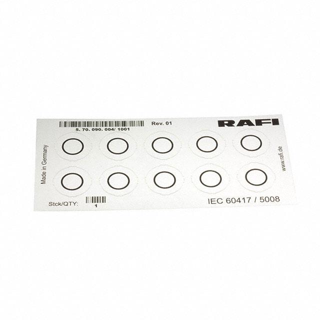 This is manufactured by RAFI USA. The manufacturer part number is 5.70.090.004/1001. It is assigned with possible HTSUS value of 8538.90.8180. It is shipped in bulk package . The product is rohs3 compliant. It is a type of legend sheet accessory. In addition, it is reach unaffected. Its typical moisture sensitivity level is not applicable. Moreover, it corresponds to 5.70090, a base product number of the product. It has a long 4 weeks standard lead time. The product is suitable for use with rafix 22 fs and 30 fs series. The product is designated with the ear99 code number.