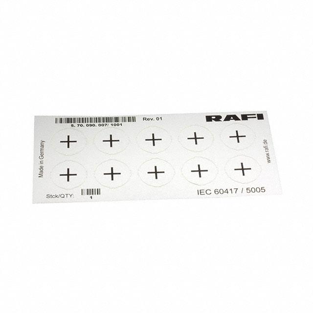 This is manufactured by RAFI USA. The manufacturer part number is 5.70.090.007/1001. It is assigned with possible HTSUS value of 8538.90.8180. The product is rohs3 compliant. It is a type of legend sheet accessory. In addition, it is reach unaffected. Its typical moisture sensitivity level is not applicable. In addition, bulk is the available packaging type of the product. The product is suitable for use with rafix 22 fs and 30 fs series. It has a long 4 weeks standard lead time. The rafi usa's product offers user-desired applications. Moreover, it corresponds to 5.70090, a base product number of the product. The product is designated with the ear99 code number.