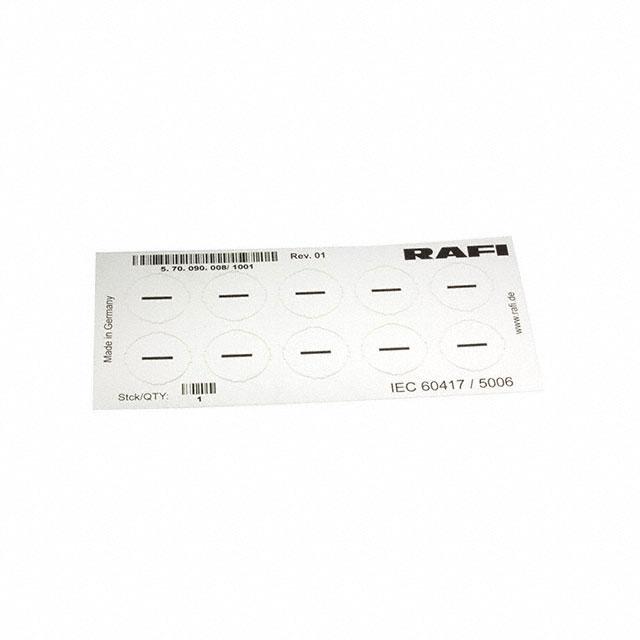 This is manufactured by RAFI USA. The manufacturer part number is 5.70.090.008/1001. It is assigned with possible HTSUS value of 8538.90.8180. The product is rohs3 compliant. It is a type of legend sheet accessory. In addition, it is reach unaffected. Its typical moisture sensitivity level is not applicable. In addition, bulk is the available packaging type of the product. The product is suitable for use with rafix 22 fs and 30 fs series. It has a long 4 weeks standard lead time. The rafi usa's product offers user-desired applications. Moreover, it corresponds to 5.70090, a base product number of the product. The product is designated with the ear99 code number.