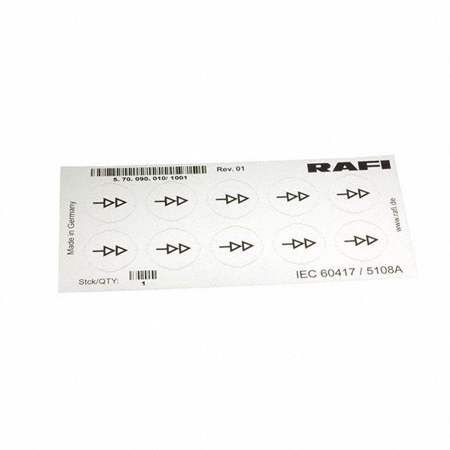 This is manufactured by RAFI USA. The manufacturer part number is 5.70.090.010/1001. It is assigned with possible HTSUS value of 8538.90.8180. It is shipped in bulk package . The product is rohs3 compliant. It is a type of legend sheet accessory. In addition, it is reach unaffected. Its typical moisture sensitivity level is not applicable. Moreover, it corresponds to 5.70090, a base product number of the product. It has a long 4 weeks standard lead time. The product is suitable for use with rafix 22 fs and 30 fs series. The product is designated with the ear99 code number.