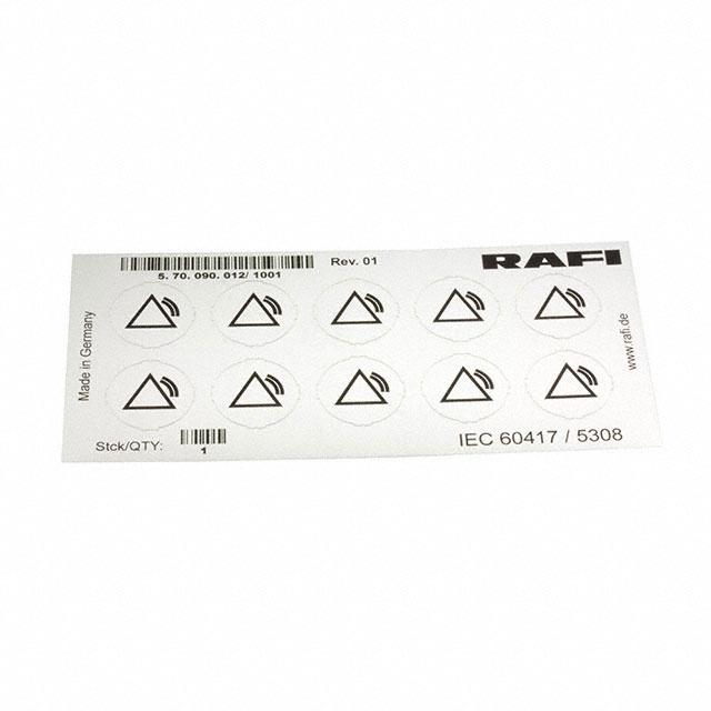 This is manufactured by RAFI USA. The manufacturer part number is 5.70.090.012/1001. It is assigned with possible HTSUS value of 8538.90.8180. It is shipped in bulk package . The product is rohs3 compliant. It is a type of legend sheet accessory. In addition, it is reach unaffected. Its typical moisture sensitivity level is not applicable. Moreover, it corresponds to 5.70090, a base product number of the product. It has a long 4 weeks standard lead time. The product is suitable for use with rafix 22 fs and 30 fs series. The product is designated with the ear99 code number.