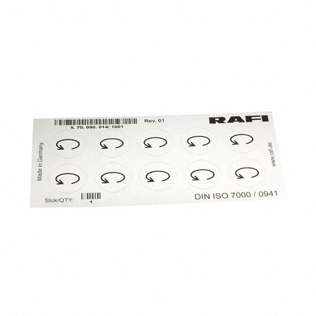 This is manufactured by RAFI USA. The manufacturer part number is 5.70.090.014/1001. It is assigned with possible HTSUS value of 8538.90.8180. It is shipped in bulk package . The product is rohs3 compliant. It is a type of legend sheet accessory. In addition, it is reach unaffected. Its typical moisture sensitivity level is not applicable. Moreover, it corresponds to 5.70090, a base product number of the product. It has a long 4 weeks standard lead time. The product is suitable for use with rafix 22 fs and 30 fs series. The product is designated with the ear99 code number.