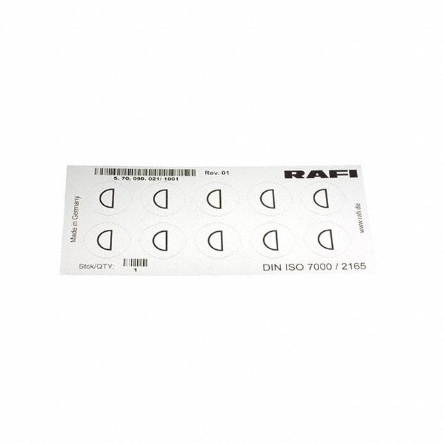 This is manufactured by RAFI USA. The manufacturer part number is 5.70.090.021/1001. It is assigned with possible HTSUS value of 8538.90.8180. It is shipped in bulk package . The product is rohs3 compliant. It is a type of legend sheet accessory. In addition, it is reach unaffected. Its typical moisture sensitivity level is not applicable. Moreover, it corresponds to 5.70090, a base product number of the product. It has a long 4 weeks standard lead time. The product is suitable for use with rafix 22 fs and 30 fs series. The product is designated with the ear99 code number.