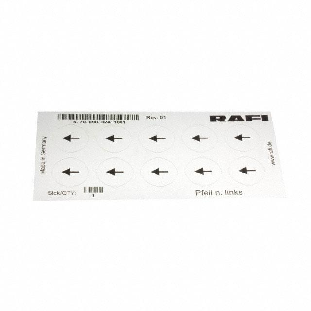 This is manufactured by RAFI USA. The manufacturer part number is 5.70.090.024/1001. It is assigned with possible HTSUS value of 8538.90.8180. The product is rohs3 compliant. It is a type of legend sheet accessory. In addition, it is reach unaffected. Its typical moisture sensitivity level is not applicable. In addition, bulk is the available packaging type of the product. The product is suitable for use with rafix 22 fs and 30 fs series. It has a long 4 weeks standard lead time. The rafi usa's product offers user-desired applications. Moreover, it corresponds to 5.70090, a base product number of the product. The product is designated with the ear99 code number.