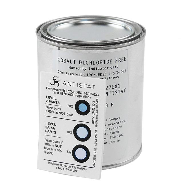 This is manufactured by Antistat Inc. The manufacturer part number is 309-0069. Its typical moisture sensitivity level is not applicable. It is assigned with possible HTSUS value of 3822.19.0080. It is shipped in pail package . Specifications include 2.00" l x 3.00" w, 125 pcs/can, meets ipc/jedec j-std-033c. The product is rohs3 compliant. It is a type of humidity card accessory. The product is suitable for use with moisture. The product is designated with the ear99 code number.