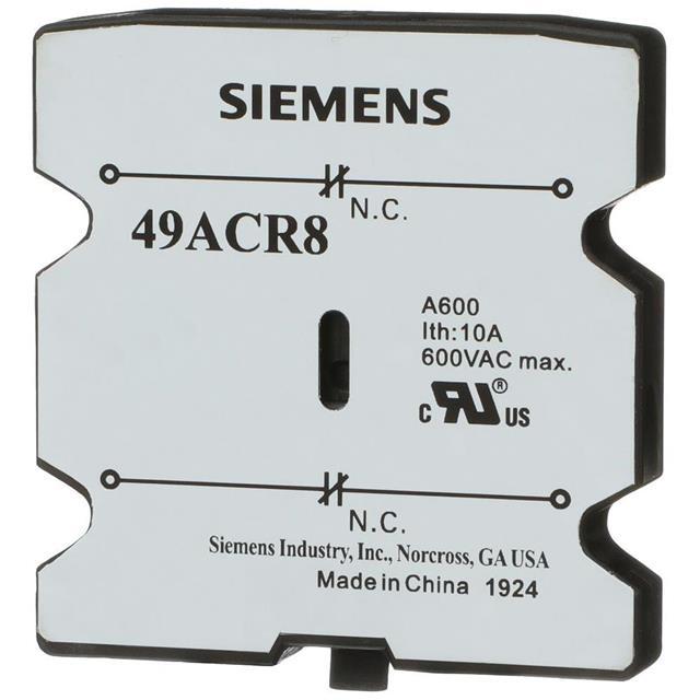 This is manufactured by Siemens. The manufacturer part number is 49ACR8. It is shipped in box package . It is a type of auxiliary switch accessory. In addition, it is reach unaffected. Its typical moisture sensitivity level is not applicable. It has a long 15 weeks standard lead time.