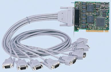 Serial Board- 8 Port RS232 Universal PCI serial board provides 8 RS232 serial ports connected by via 8x25/8x9 pin connector. 8 Port RS232 PCI 3.0 32 byte Tx & 32 byte Rx FIFOs Data rate up to 115,200 baud DB9 connector ( 481-1220 ) DB25 connector ( 481-1668 ) Drivers for all popular operating systems Lifetime warranty and support PCI Serial Boards/RS-232 PCI Bus: High performance I/O slot in every desktop Pentium, Pentium (II) and Pentium Pro PC. PCI provides improved performance to all running applications by freeing up the CPU.,PCI boards are detected and configured automatically by the PC, avoiding conflicts in address and interrupts. PCI boards automatically implement a shared interrupt system so maximising use of precious system resources.,The Windows device drivers supplied with each serial card reads the PCI assigned setup and configures your system accordingly. Products in this range are supplied with Vista and Windows drivers and are Plug-and Play compatible.,PCI 2.3 requires that all plug-in cards support 3.3V signalling. To support many older systems that use 5V signalling the following Brainboxes products are compatible with both 3.3V and 5V signalling.All the boards in this range also share the same following specifications: Data bits: 5, 6, 7 or 8 Stop bits: 1 or 2 Parity: Odd, even, mark, none or spaces