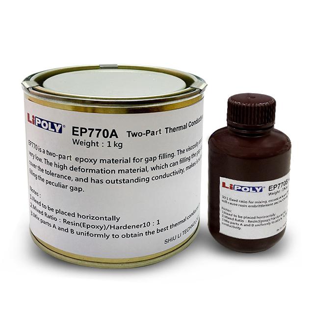 This is manufactured by Shiu Li Technology Co., Ltd.. The manufacturer part number is EP770-1100. It is assigned with possible HTSUS value of 8546.90.0000. The product is rohs compliant. The product is highly reliable with a long-lasting period of 24 months. It comes in epoxy, 2 part configuration. In addition, it is reach unaffected. Its warranty starts from date of shipment. It offers storage features at 41°f ~ 95°f (5°c ~ 35°c). The shiu li technology co., ltd.'s product offers user-desired applications. It features thermal conductivity of 2.50w/m-k. The product's diameters include 1 kg can. It has a long 1 weeks standard lead time. It has -76°f ~ 302°f (-60°c ~ 150°c) of usable temperature range. Its typical moisture sensitivity level is 1 (unlimited). It has a classic black colour. The product lipoly® ep770, is a highly preferred choice for users. In addition, can is the available packaging type of the product. The product is designated with the ear99 code number.