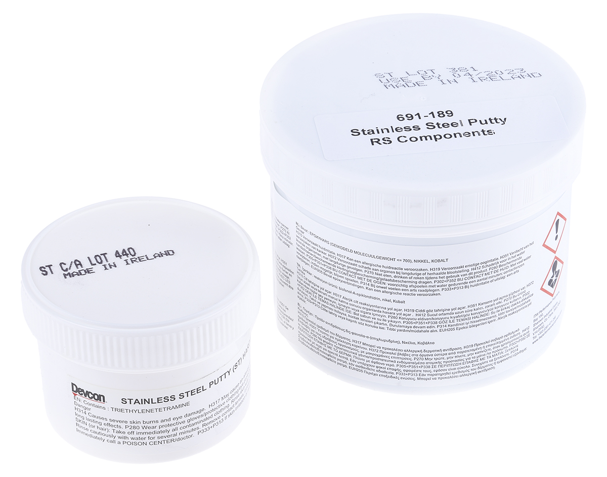 This is RS PRO Adhesive 500 g manufactured by ITW Devcon. The manufacturer part number is RS_691-189. Its actual cure time is about 16 h . The product has → +121 °c of operating temperature range. The product is in solid form . It has a decent grey colour. Additionally, it has approximately 58min time setting . Applications Information involves industrial. It has about 2.24 specific gravity . The package is a sort of can. Its adhesive is of epoxy adhesive type . Its package size is approximately 500 g . It has a maximum operating temperature of +121°c. It has 16 mpa shear strength . It has a/an stainless steel material compatibility .