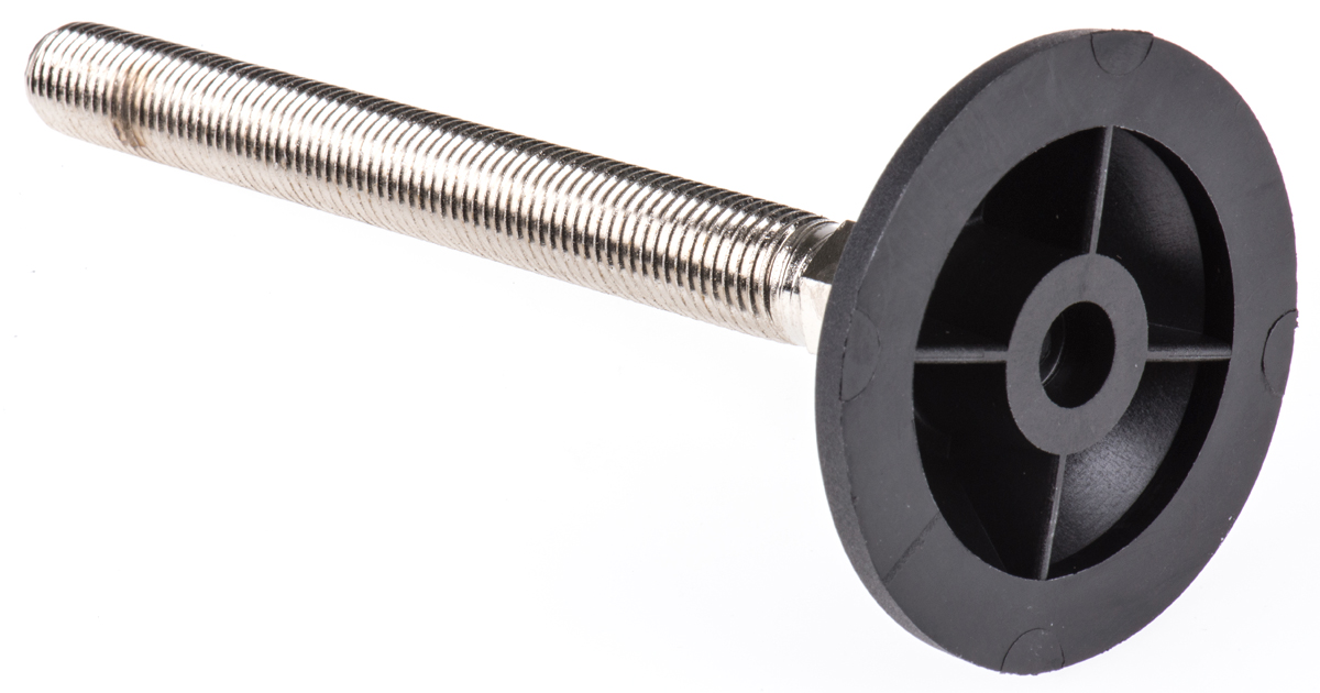 This is Nickel Plated Steel Adjustable Feet 70mm Dia. 186mm 1500kg Static load Capacity 150mm M16 manufactured by Nu-Tech Engineering. The manufacturer part number is A090/001. The product has approximately 1500kg capacity of static load . Its base is made up of nickel plated steel material . It has a typical thread size of m16. Its tilt angle is 10° . Features a thread length of 150mm. Its foot is made using pa reinforced nylon material . In addition, the height is 186mm.