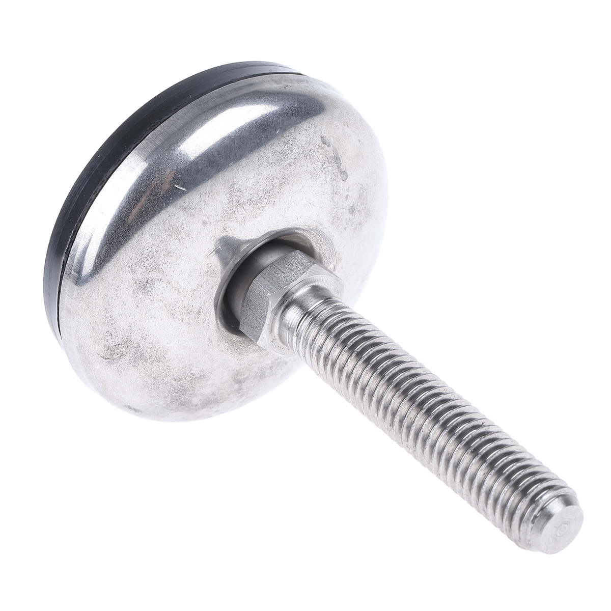 This is Stainless Steel Adjustable Feet 50mm Dia. 75mm 350kg Static load Capacity 50mm M10 manufactured by Nu-Tech Engineering. The manufacturer part number is A105/001. The product has approximately 350kg capacity of static load . Its base is made up of stainless steel material . It has a typical thread size of m10. Its tilt angle is 3.5° . Features a thread length of 50mm. Its foot is made using stainless steel material . In addition, the height is 75mm.