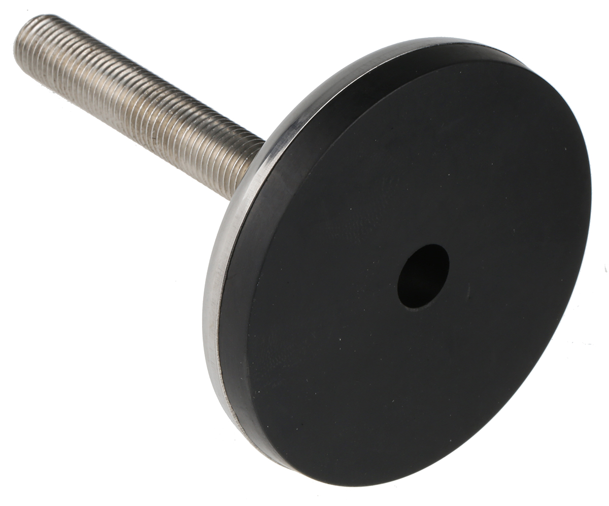 This is Stainless Steel Adjustable Feet 100mm Dia. 138mm 1000kg Static load Capacity 100mm M16 manufactured by Nu-Tech Engineering. The manufacturer part number is A105/022. The product has approximately 1000kg capacity of static load . Its base is made up of stainless steel material . It has a typical thread size of m16. Its tilt angle is 3.5° . Features a thread length of 100mm. Its foot is made using stainless steel material . In addition, the height is 138mm.