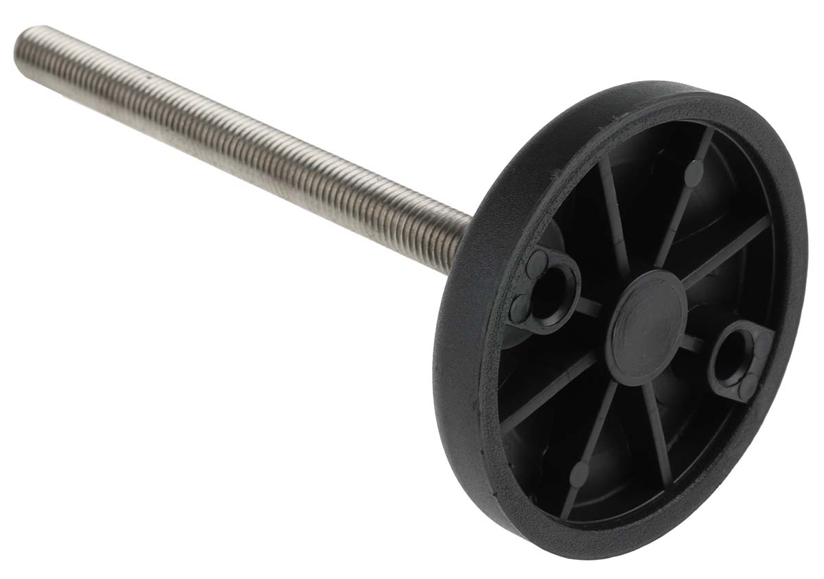 This is Adjustable Height Mount with Plastic Foo manufactured by RS PRO. The manufacturer part number is 185-4506. The product has approximately 1300kg capacity of static load . It has a decent black colour. In addition, the height is 183mm. It has a typical thread size of m12. Its tilt angle is 30° . Features a thread length of 150mm. Its foot is made using polyamide material . Its base is made up of stainless steel material .