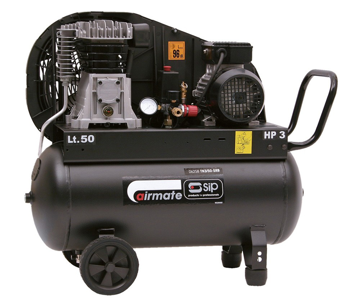 This is 3hp 50L Air Compressor 10bar manufactured by SIP. The manufacturer part number is 06258. The typical product's weight is 39kg. It features maximum pressure of 10bar. With 3hp of motor rating . The plug is a highly reliable type g - british 3-pin with long service life. It has a receiver volume approximately of 50 l .