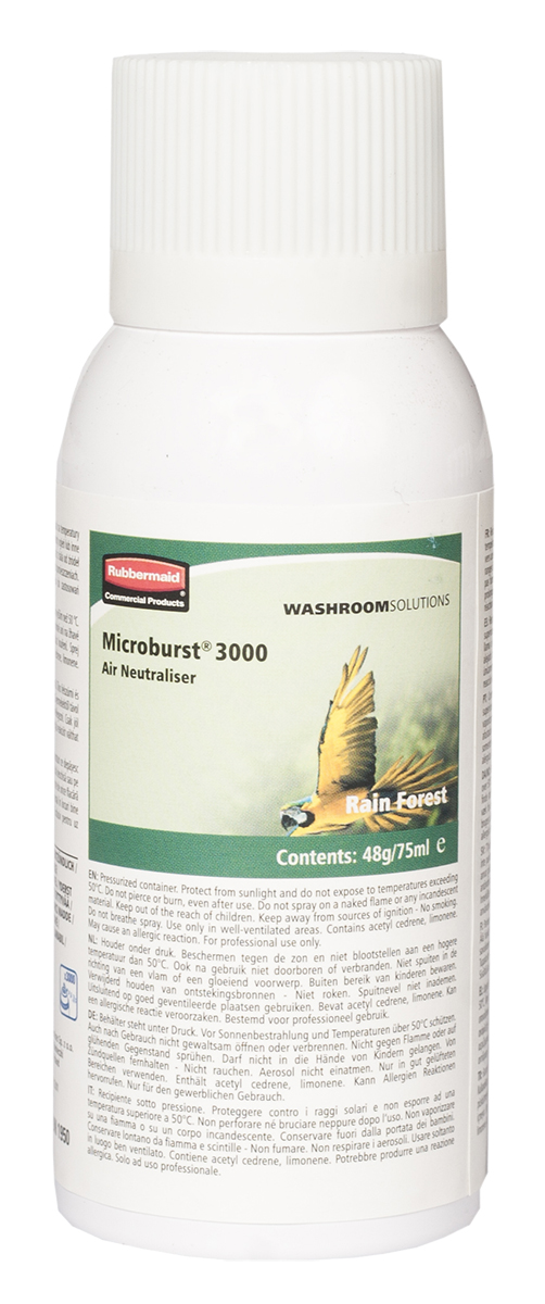 This is 75 ml Aerosol Air Freshener For Use With Microburst 3000 LumeCel Dispenser manufactured by Rubbermaid Commercial Products. The manufacturer part number is R0260053. It has a 75ml volume unit . It features microburst 3000 range. The package is a sort of aerosol. In addition, it exhibits a/an fragranced fragrance . Its package size is approximately 75 ml . The product is highly suitable for microburst 3000 lumecel dispenser.